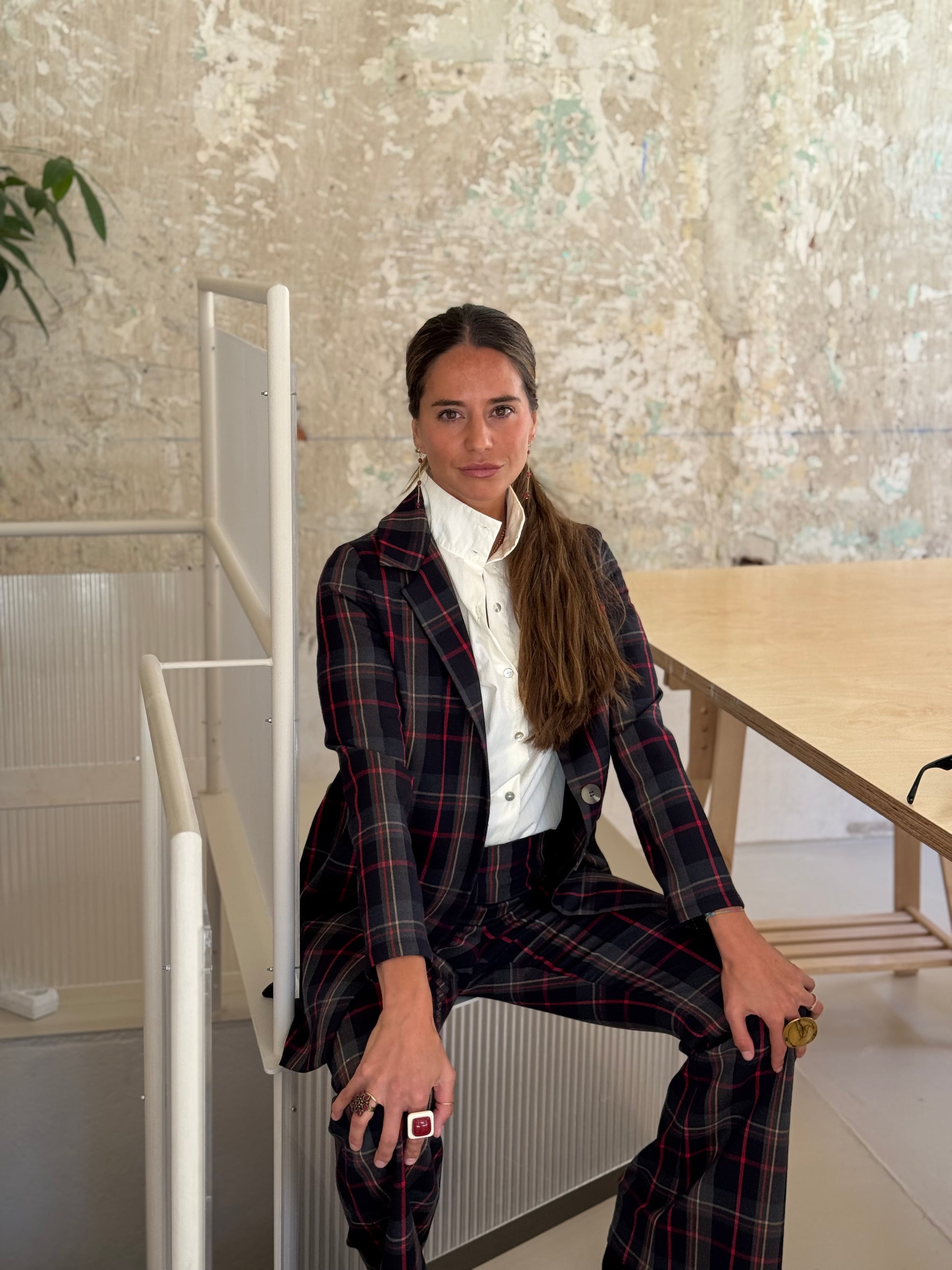 Levita realizada en escocés gris y rojo muy favorecedor. Se abrocha con 2 botones de asta y tiene dos bolsillos ocultos en la costura. En los laterales se abren 2 grandes aberturas, que aportan más movimiento . Se puede combinar con el pantalón Florencia, del mismo tejido (disponible en web), consiguiendo un total look muy actual. La levita va sin forrar.